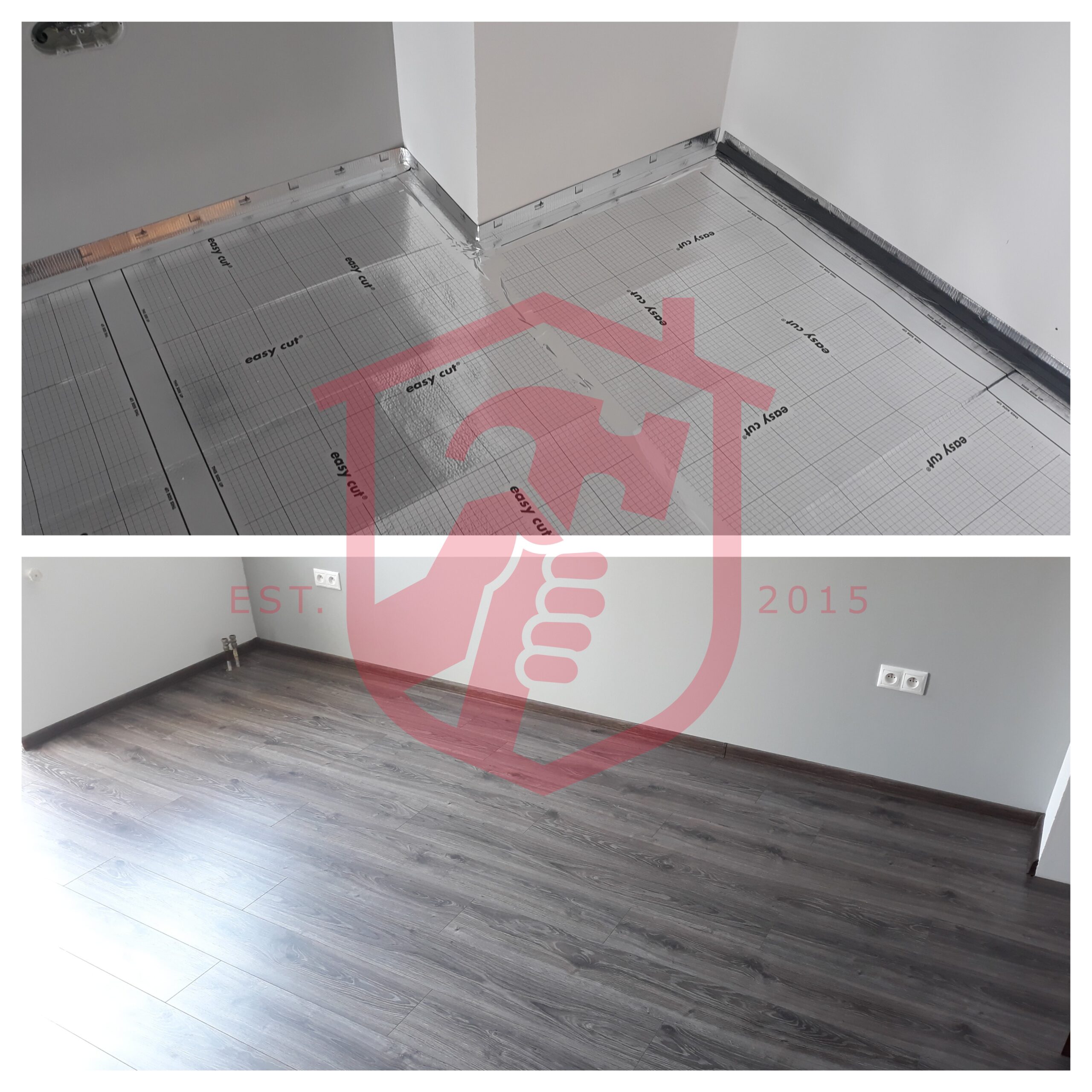 Pokladanie laminátových, vinylových či drevených podláh, vrátane montáže podlahových líšt, vyrovnávania podkladu a potrebných úprav.